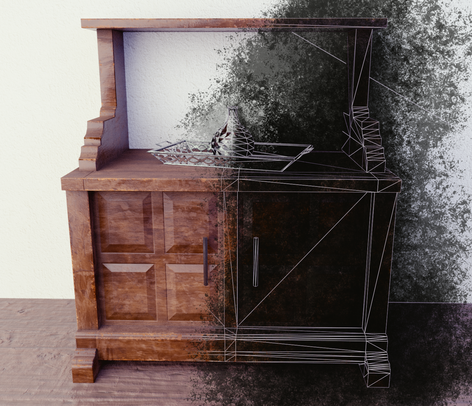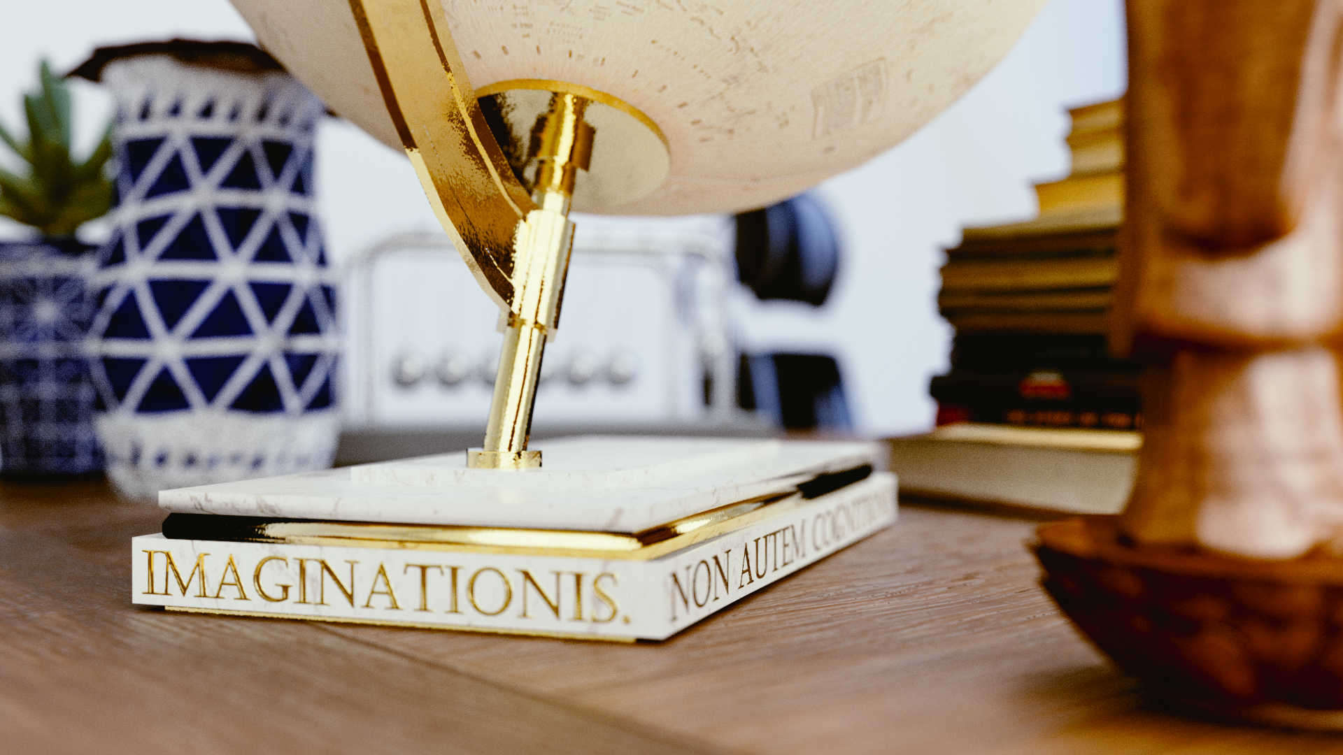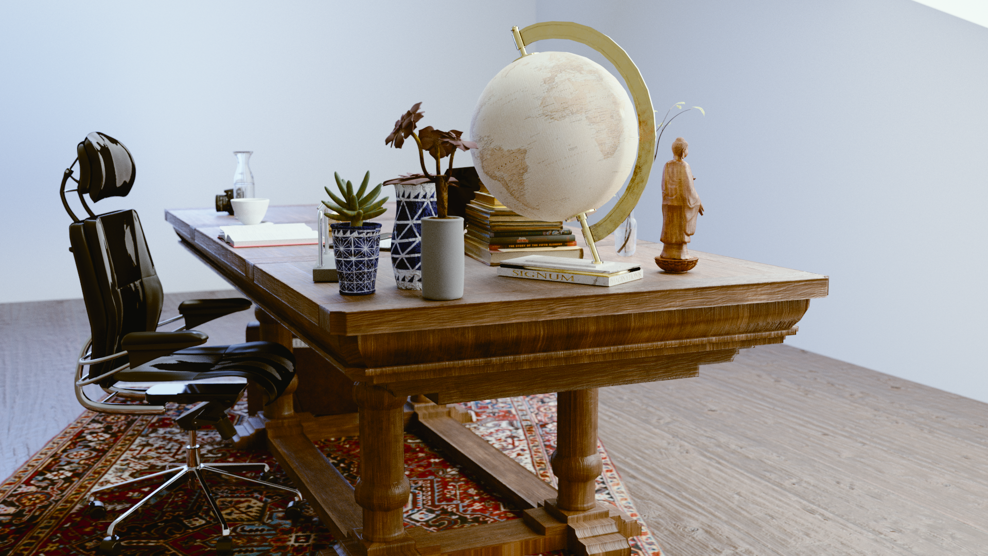 So i started modelling, the table the globus and a cabinet you can see in the top image. In the workshop we did at the uni we also used the substance toolbag which consists of Substance Designer and Substance Painter and i really fell in love with both programs. Usually i just do everything inside of Blender. But this time i modelled a highpoly version in Blender, baked the normals to a low poly mesh in blender, created a material that conforms to the shape of the model in Substance Designer and finished the material in Substance Painter then imported the finished material into Blender and rendered in Blender. And i think the difference in quality compared to my old workflow is clearly visible.