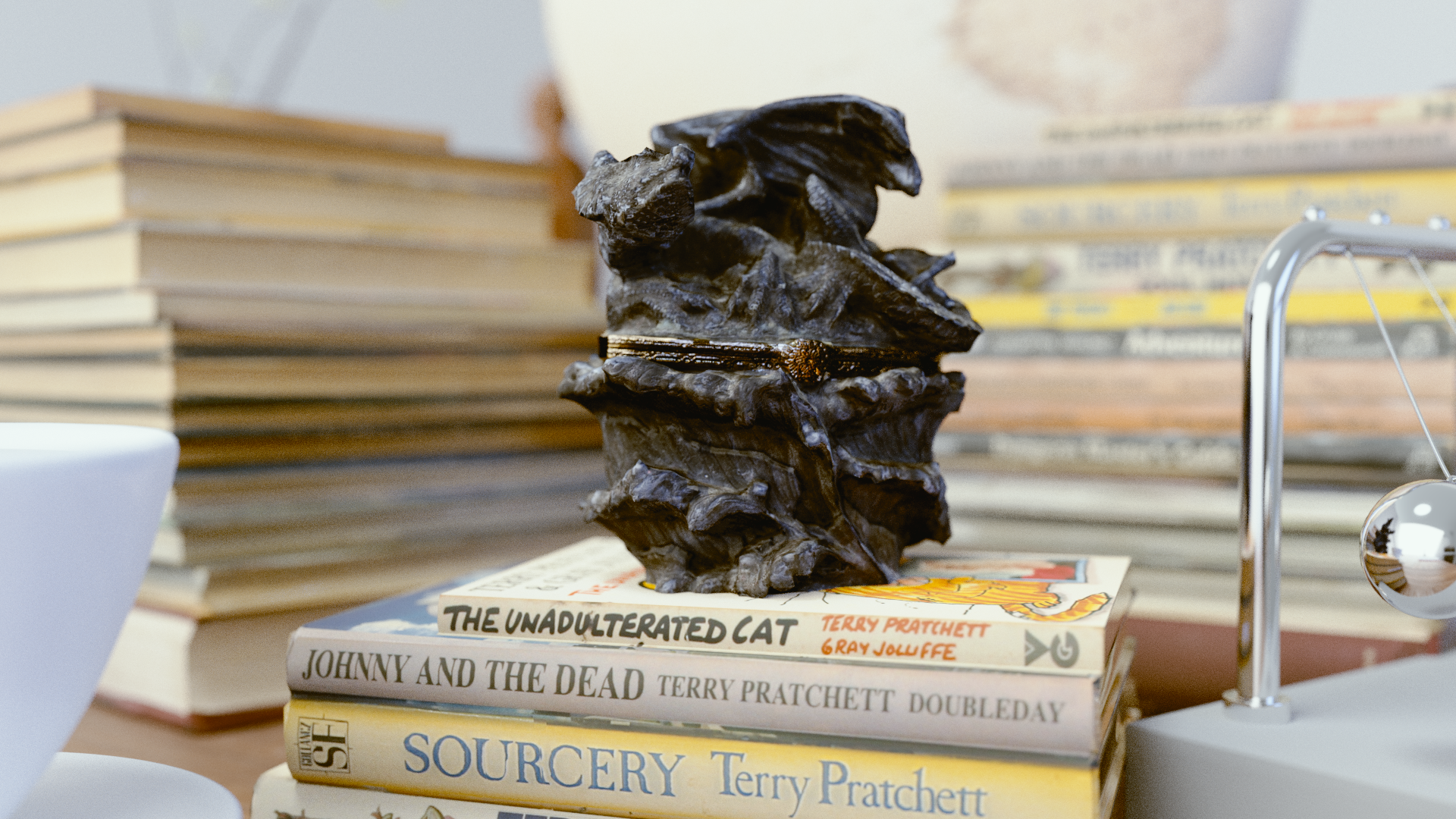 For some reason i thought it really belonged on a table owned by a old professor, who travelled the world and got all kinds of items on his desk, he brought back from his travels. I remembered i already did that kind of scene, but lost all the savefiles except some renders: